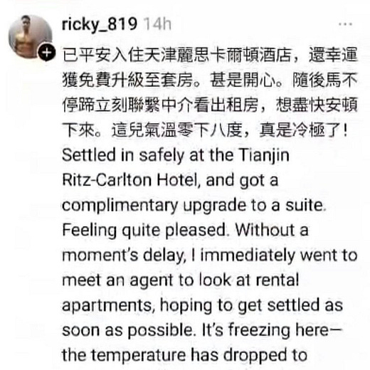 The Beijing Office of the Hong Kong Special Administrative Region Government has also reminded Cheng to be mindful of public perception when sharing personal experiences on social media.