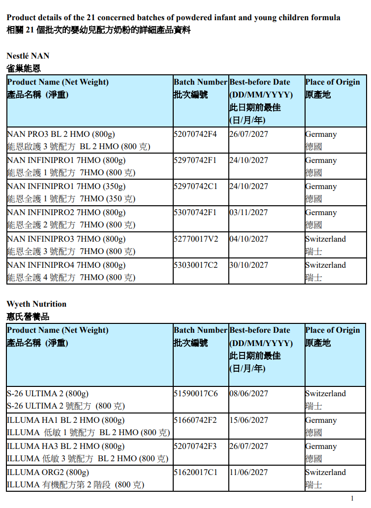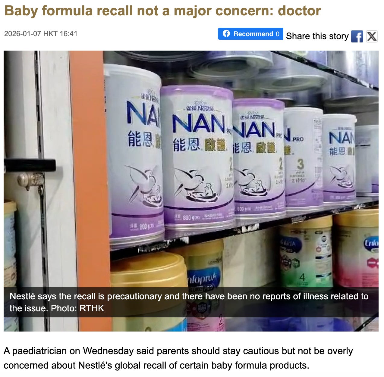 Baby formula recall in Hong Kong.